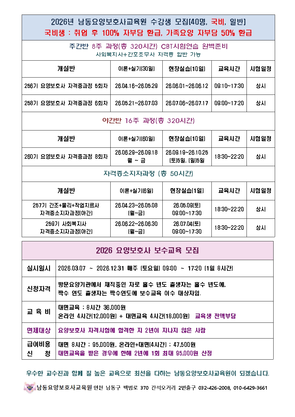 남동요양보호사교육원은 성실한 자세로 신뢰 받는 교육, 책임 있는