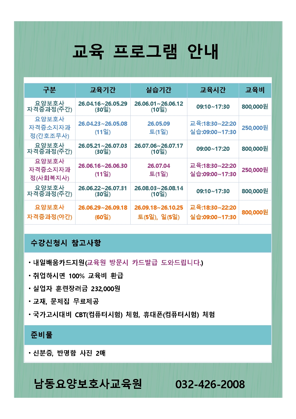 남동요양보호사교육원은 고용노동부 국비인증 훈련기관입니다.